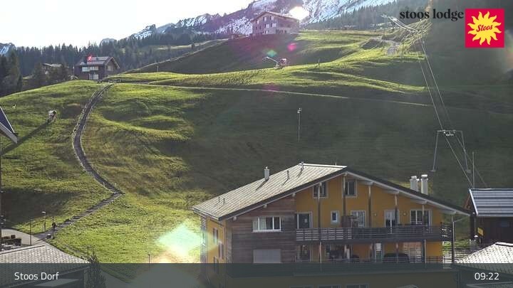 Blick auf das autofreie Bergdorf Stoos im Kanton Schwyz am Vierwaldstättersee.