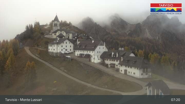 Die Webcam zeigt die Bergwelt rund um den Monte di Lussari.