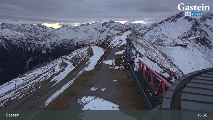 Die Webcam blickt von der Südseite der Bergstation am Stubnerkogel auf die umliegende Bergwelt von Bad Gastein.