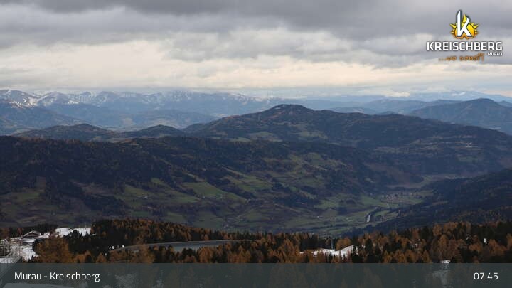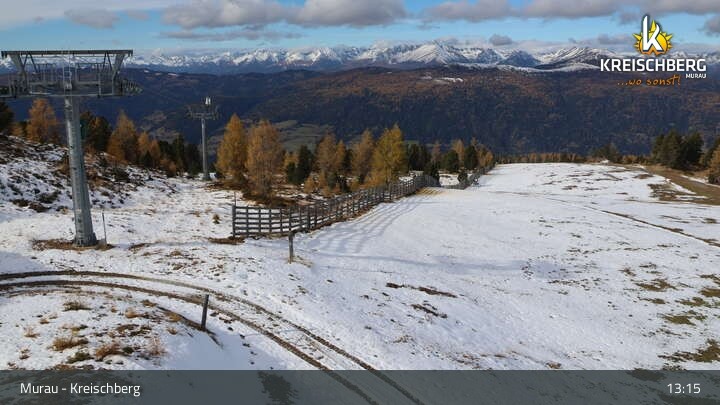 Hier siehst du den Ausblick von der Bergstation des Sessellifts Orange Sixpack am Kreischberg.