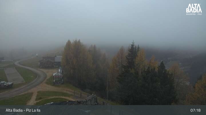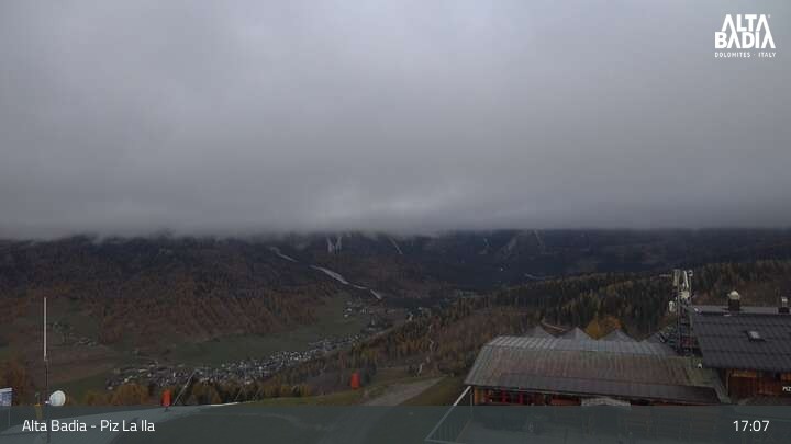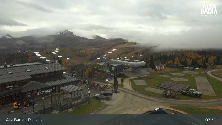 Zu sehen ist die Bergstation des Sessellifts Bamby am Piz La Ila mit Blick zum Marmolada Gletscher