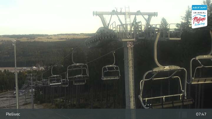Blick auf die Skipisten im Skigebiet Albertamy - Pleßberg im Erzgebirge.