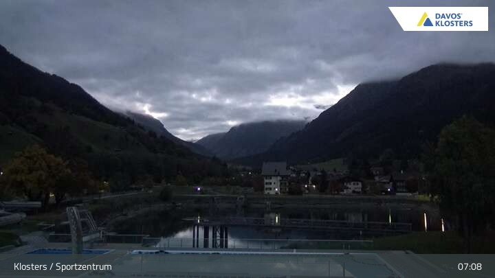 Hier siehst du das Sportzentrum und das Freibad in Klosters