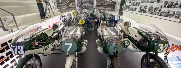 Im Motorradmuseum geht ihr auf Tour in einer der bedeutendsten Zweiradsammlungen Europas. Auf 1200 m² erzählen über 170 Prachtstücke die Geschichte des Motorrads von den knatternden Anfängen bis zur hochtourigen Gegenwart. Ein Soundsimulator, einzigartige Prototypen und Unikate, spannende Filme sowie die weltweit einzigartige Darstellung der regionalen Motorradfirmen DKW, Auto Union und MZ lassen die Herzen von Motorradfans aus der ganzen Welt höher schlagen.