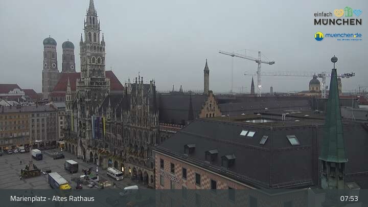 Die Webcam blickt vom Alten Rathaus auf den Marienplatz, der zentrale Platz der Münchener Innenstadt.