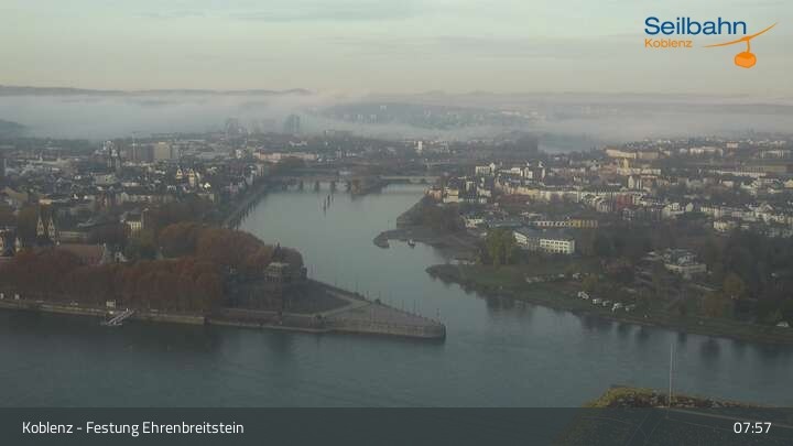 Webcam Koblenz: Blick von der Festung auf Seilbahn und Deutsches Eck, 160 m
