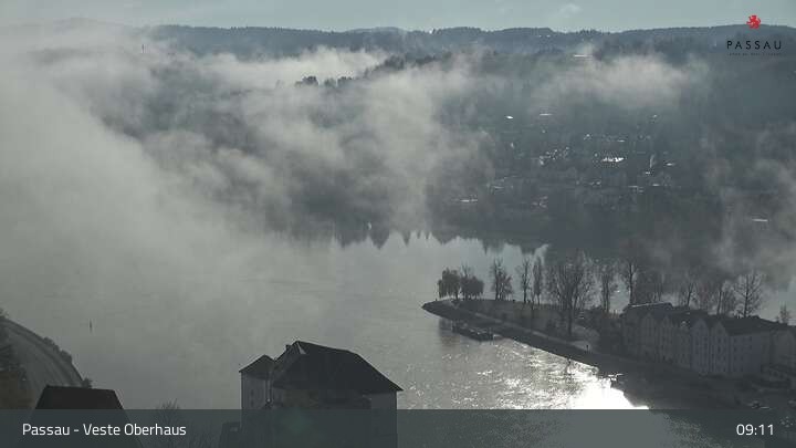 Archiv Foto Webcam Passau: Panoramablick auf Donau, Ortspitze und Altstadt 08:00 08:00