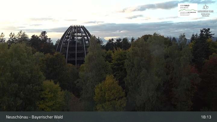 Die Kamera befindet sich in Neuschönau auf dem Dach des Besucherzentrums Hans-Eisenmann-Haus im Nationalparkzentrum Lusen im Bayerischen Wald. Zu sehen ist auch der über 40 Meter hohe Turm des Baumwipfelpfads.