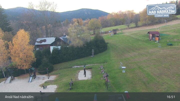 Die Webcam zeigt die Skilifte im Areal Nad nádražím bei Železná Ruda nahe der deutschen Grenze.