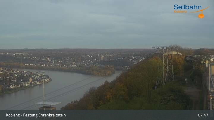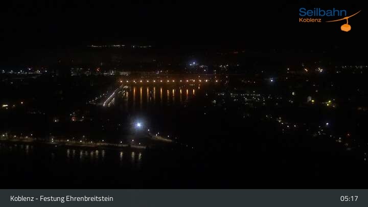 Webcam Koblenz: Blick von der Festung auf Seilbahn und Deutsches Eck, 160 m
