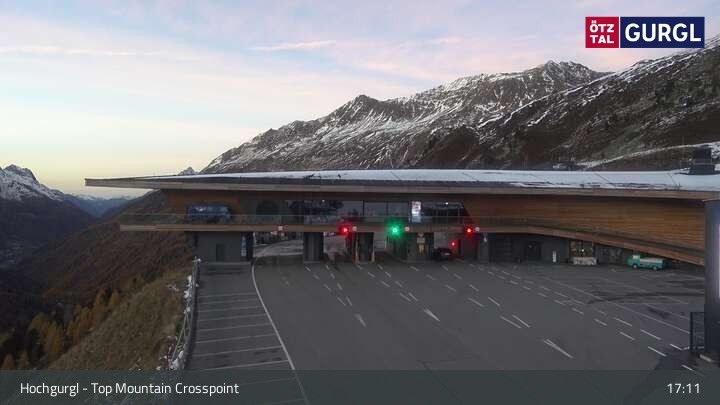 Hier blickst du auf den Top Mountain Crosspoint bei Hochgurgl im Tiroler Ötztal. Es handelt sich dabei um die Mautstation zur Timmelsjocher Hochalpenstraße. In dem Gebäude befindet sich unter anderem auch das höchste Motorradmuseum der Welt.
