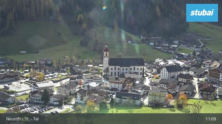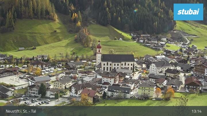 Die Webcam blickt auf den kleinen Ort Neustift im Stubaital.