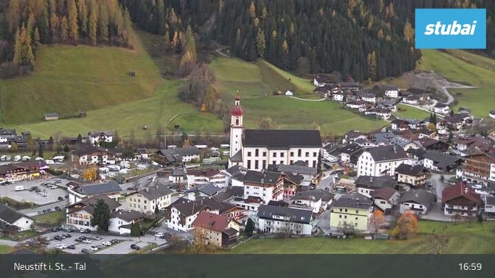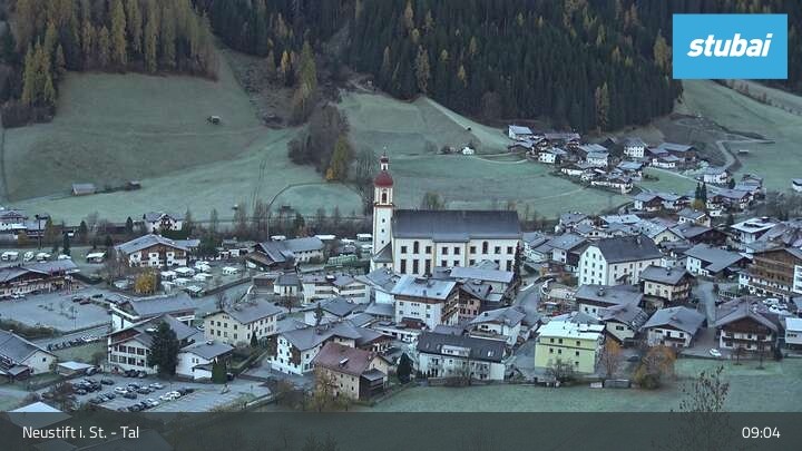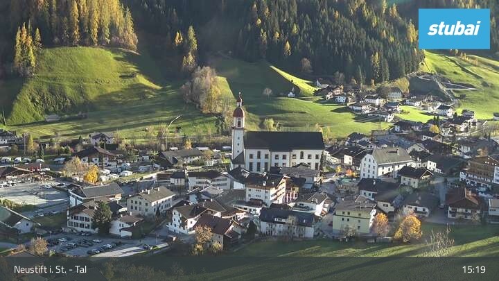 Die Webcam blickt auf den kleinen Ort Neustift im Stubaital.