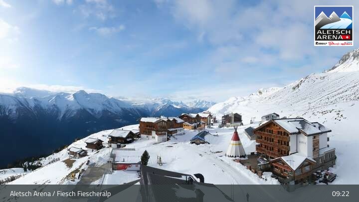 Webcam Aletsch Arena: Blick auf die Fiescheralp, 2,220 m