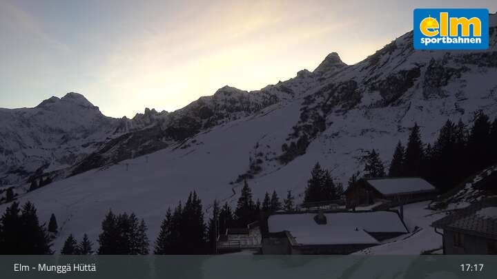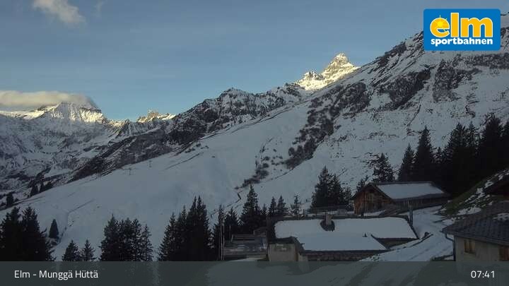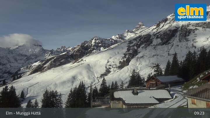 Die Webcam zeigt die Munggä Hüttä in Elm. Im Winter ideal für Skifahrer, Snowboarder und Winterwanderer zum Einkehren geeignet, ist sie im Sommer leider nicht in Betrieb.