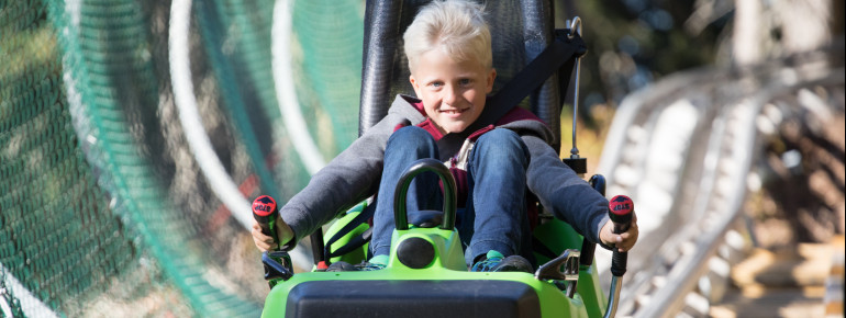 Auf der neuen Rodelbahn erwarten dich aufregende 1035 Meter mit zwei Jumps und zwei 360-Grad-Kreisel. Einer davon ist mit bis zu 18 Metern Höhe sogar der höchste Kreisel in Österreich! Bis zu 42 km/h erreichst du auf dem Weg ins Tal. Gestartet wird direkt an der Bergstation der Wiedersbergerhornbahn auf 1845 Metern. Bis zum Ziel des Alpbachtaler Lauser-Sauser werden 134 Höhenmeter überwunden. Rund 90 Sekunden brauchen die schnellsten dafür. Danach bringt dich ein Förderband wieder zurück zum Ausgangspunkt.