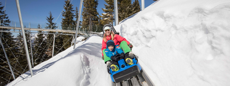 Bis zu 500 Personen können pro Stunde mit den 47 Zweisitzer-Schlitten befördert werden. Kinder ab 3 Jahren dürfen zusammen mit den Eltern fahren. Ab 8 Jahren und einer Körpergröße von 130 Zentimetern darfst du dich auch alleine ins Vergnügen stürzen. Zusatzfunktionen, die sicher für großen Spaß sorgen, sind ein Fotopoint und eine Geschwindigkeitsmessung.