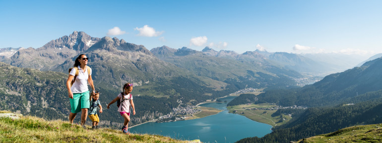 Das Berninamassiv auf der einen, die Oberengadiner Seenplatte auf der anderen Seite und ein Blick über 1001 Alpengipfel: Wandern auf Corvatsch Furtschellas belohnt. Für Familien eignet sich der Wasserweg, für Kulinarik-Freunde die Via Gastronomica, für Weitsicht-Suchende der Panoramaweg. Ein Klassiker ist die Hahnenseewanderung von Corvatsch nach St. Moritz.