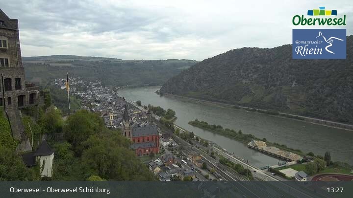 Die Webcam blickt über die Schönburg im rheinland-pfälzischen Oberwesel auf den Rhein. Die Höhenburg stammt aus dem 12. Jahrhundert.