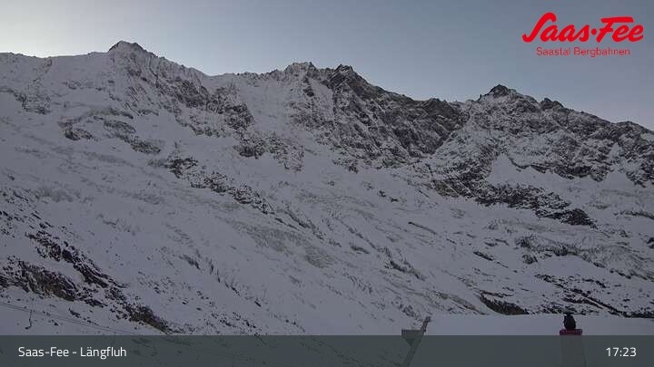 Panoramablick von der Bergstation der Längfluhbahn auf den Feegletscher.