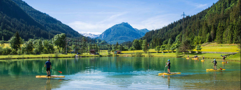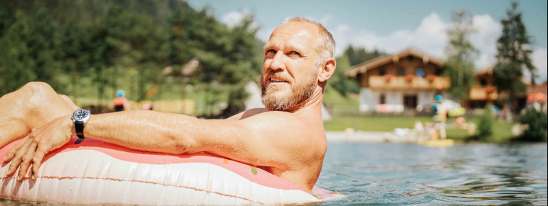Der Badesee Flachauwinkl liegt eingebettet in die malerische Berglandschaft der Salzburger Sportwelt. Aufgrund seiner ruhigen, idyllischen Lage kannst du dich hier bestens erholen und die Sonne genießen. Großzügige Liegewiesen mit schattenspendenden Bäumen umranden den See, der mit bester Wasserqualität punktet und für eine erfrischende Abkühlung an heißen Tagen sorgt.