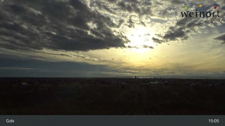 Über die Weinberge hinweg blickt die Webcam auf den Ort Gols im Burgenland.