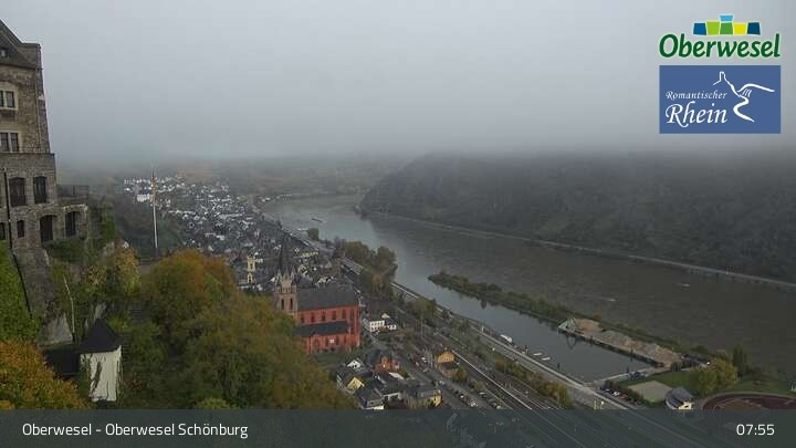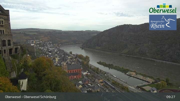 Die Webcam blickt über die Schönburg im rheinland-pfälzischen Oberwesel auf den Rhein. Die Höhenburg stammt aus dem 12. Jahrhundert.