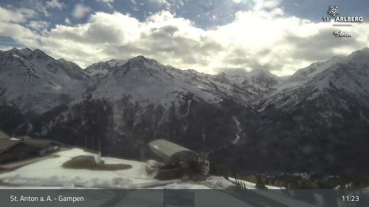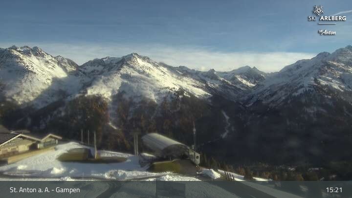 Genieße den Ausblick vom Gampen Restaurant an der Bergstation der Gampenbahn auf die umliegende Bergwelt.