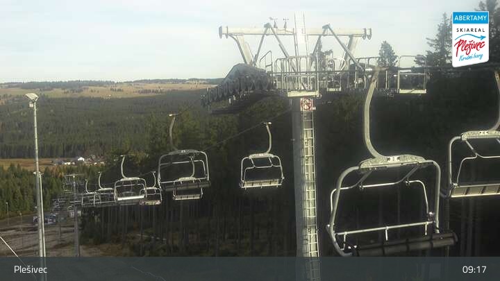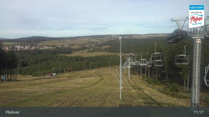 Blick auf die Skipisten im Skigebiet Albertamy - Pleßberg im Erzgebirge.