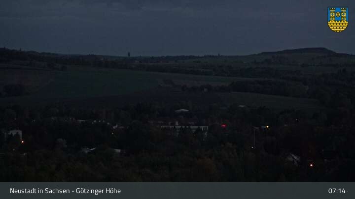 Hier siehst du Neustadt in Sachsen, eine Kleinstadt im Elbsandsteingebirge. Die Webcam befindet sich südlich der Stadt an der Götzinger Höhe.