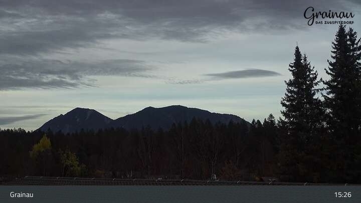 Die Live-Webcam zeigt vom Freibad aus einen Rundumblick auf das Bergdorf Grainau und seine Umgebung. Zu sehen sind unter anderem die Zugspitze, der große und kleine Waxenstein sowie der Hohe Ziegspitz.