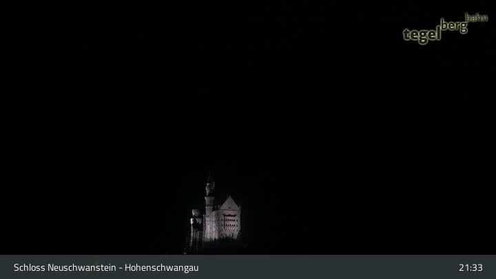 Die Kamera befindet sich am Schloss Hohenschwangau und schwenkt vom Schloss Neuschwanstein zum Museum der Bayerischen Könige.