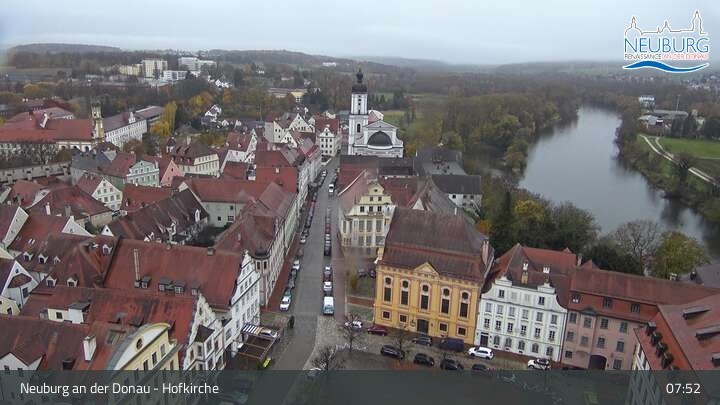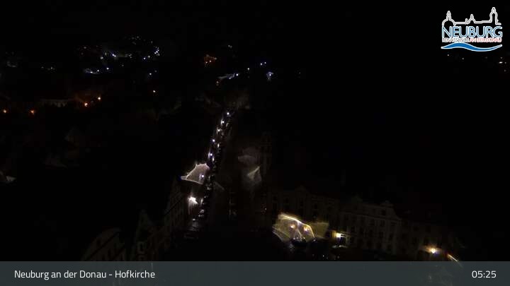 Die Webcam befindet sich an der Hofkirche in Neuburg an der Donau und blickt über den Karlsplatz bis zum Residenzschloss.