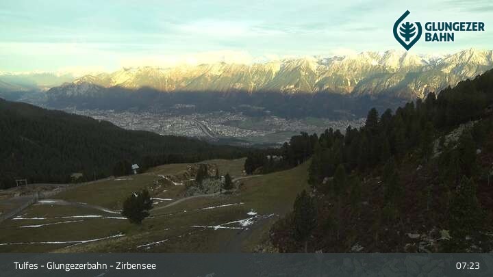Die Webcam ermöglicht einen tollen Panoramablick auf die Landschaft am Glungezer. Das Bild wird unweit des Zirbensees aufgenommen.