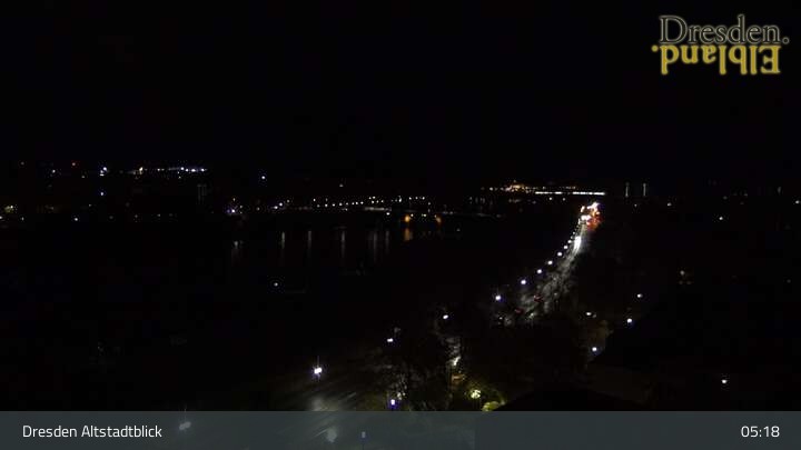 Die Kamera befindet sich am Hotel am Terrassenufer in Dresden und blickt auf die Altstadt und die Elbe.
