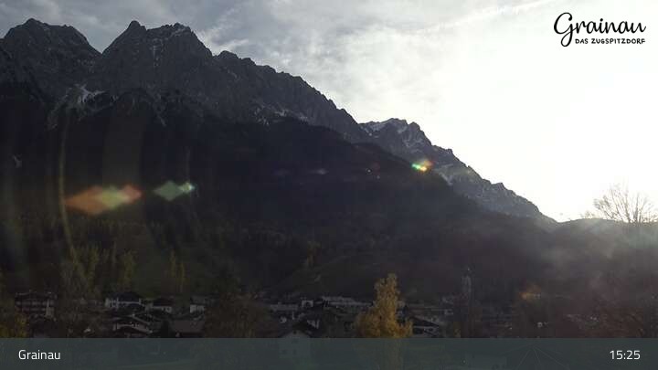 Die Live-Webcam zeigt vom Freibad aus einen Rundumblick auf das Bergdorf Grainau und seine Umgebung. Zu sehen sind unter anderem die Zugspitze, der große und kleine Waxenstein sowie der Hohe Ziegspitz.