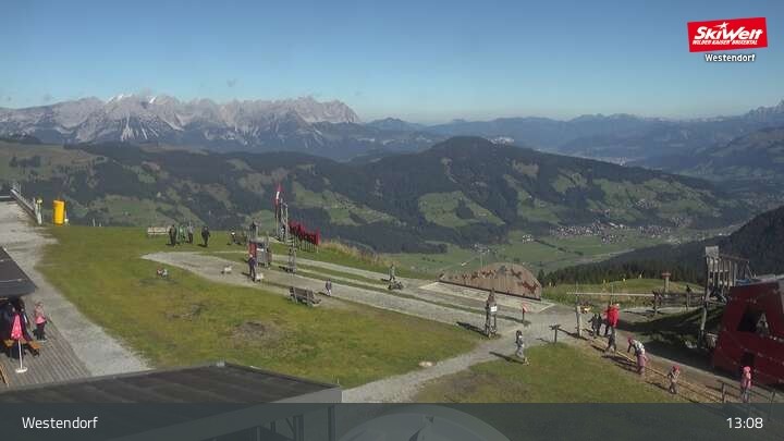 Die Webcam auf der Choralpe in Westendorf blickt auf die umliegende Alpenwelt.