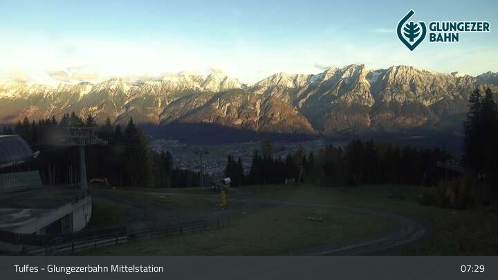 Webcam Tulfes: Blick von der Mittelstation am Glungezer, 1,553 m