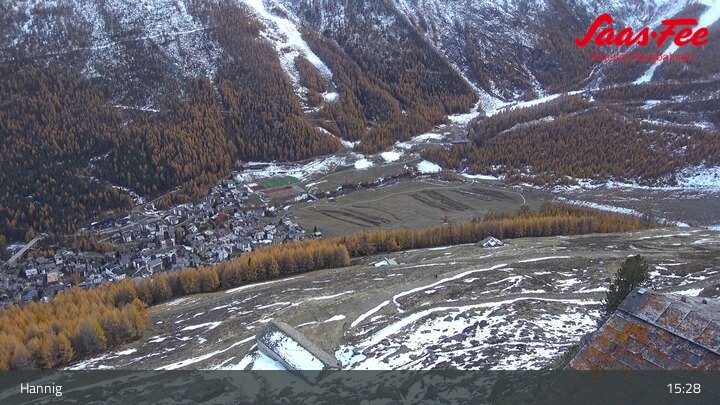 Die Webcam eröffnet einen schönen Ausblick von der Bergstation Hannig über Saas-Fee im Schweizer Kanton Wallis.