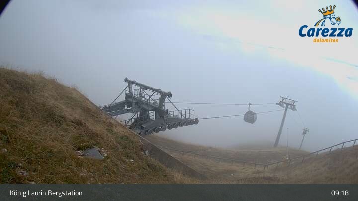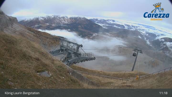 Die Webcam eröffnet von der Kölner Hütte das Panorama zum Latemar. Du siehst hier auch gut die neue König Laurin Gondelbahn mit unterirdischer Bergstation.