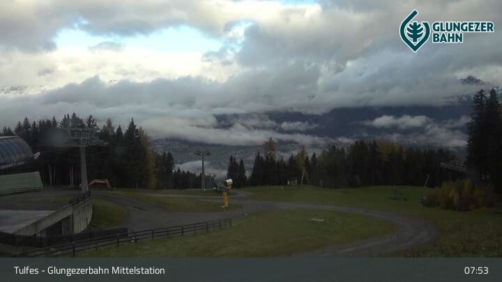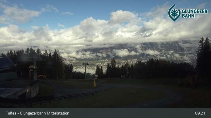 Webcam Tulfes: Blick von der Mittelstation am Glungezer, 1,553 m