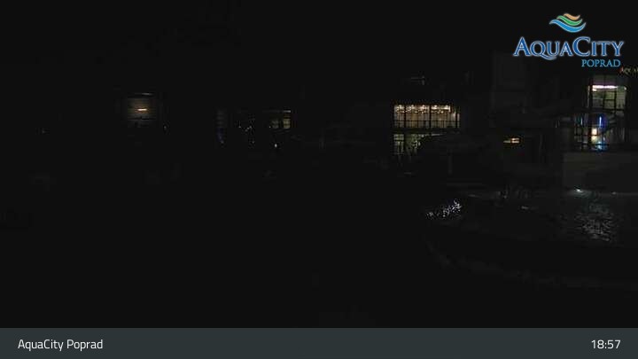 Sicht auf den Außenbereich der AquaCity in der slowakischen Stadt Poprad am Fuße der Tatra.