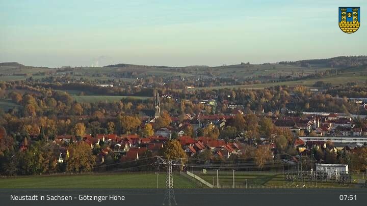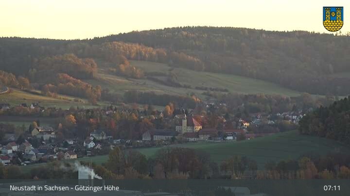 Hier siehst du Neustadt in Sachsen, eine Kleinstadt im Elbsandsteingebirge. Die Webcam befindet sich südlich der Stadt an der Götzinger Höhe.